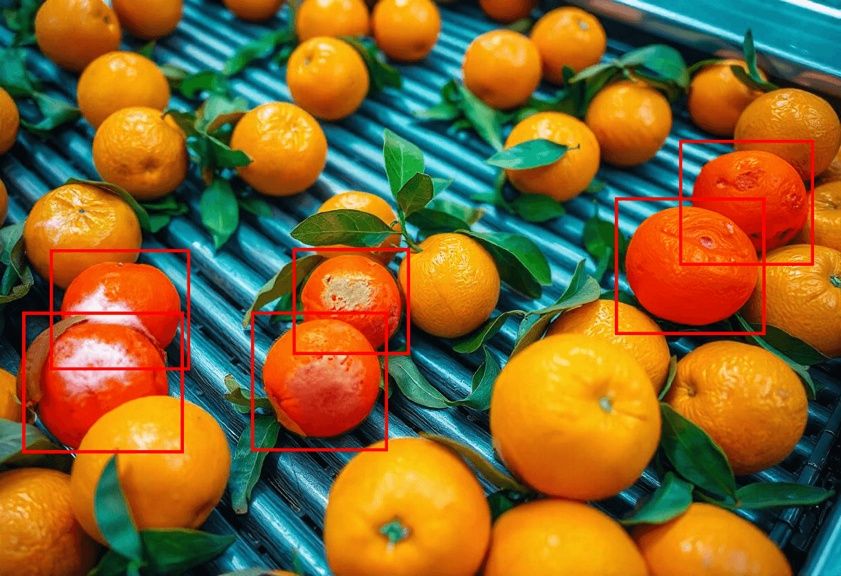 Detect the color, texture, size, and shape of the fruits during production process.